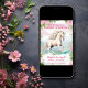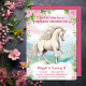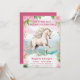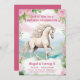 Invitación Bonito Caballo Blanco y Flores Rosadas Cumpleaños