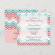 Bonito, diversión, alegre y colorido chevron zigzag diseño invitaciones de fiesta de cumpleaños. Se puede personalizar en otras invitaciones de fiestas - graduación, retiro, etc. Esquema de color - verde azulado, azul, rojo, rosa.
