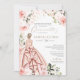 Elegante y lujoso diseño con rosas blancas y rosas blandas, acentos dorados y una hermosa muñeca en un lujoso y florido vestido de bolas. Todo el texto es completamente personalizable.