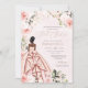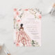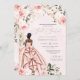 Elegante y lujoso diseño con rosas blancas y rosas blandas, acentos dorados y una hermosa muñeca en un lujoso y florido vestido de bolas. Todo el texto es completamente personalizable.