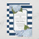 Invitación Bonito Floral Moderno elegante Navy franja blanca