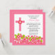 Invitación Bonito Flores rosas y cruz primera comunión sagrad