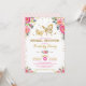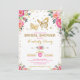 Invitación a la ducha nupcial con temática de mariposa con un ilustracion magnífico de color azul y flores rosadas calientes y un par de intrincadas mariposas doradas