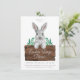 Nuestro adorable y adorable Día de Pascua Picnic Bunny & Rustic Rótulo Invitation presenta un ilustracion acuarela de suave conejo gris de Pascua con un rústico cartel de madera con el texto "Picnic del Día de Pascua". La parte de atrás de la invitación tiene un patrón de campo al aire libre con huevos de Pascua pintados de colores, cintas y sauces y flores de primavera blancas. Todo el texto se puede actualizar para hacer una invitación personalizado para cualquier evento de primavera!