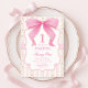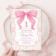 Canalice la elegancia de ensueño del romántico estilo de coqueta vintage con esta invitación de primer cumpleaños 'Fancy One'." Diseñada con un brillante arco rosado, un delicado patrón de rayas rosas y detalles de encajes delgados, esta tarjeta irradia encanto vintage y sofisticación coqueta. Perfecto para una celebración chic, jovial o casera en el jardín, es la mejor opción para los padres que adoran una romántica estética fiesta inspirada en la herencia.