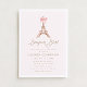 Elegant baby shower invitation featuring a charming Paris Eiffel Tower illustration topped with a delicate pink bow and soft blush tones. Inspired by classic French style, this design blends timeless elegance with sweet, feminine charm.