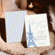 Di bonjour bébé con esta moda y elegante invitación a la ducha de bebé con temática parisina. Diseñado con tonos suaves y ruidosos, un ilustracion delgado de la Torre Eiffel atado con un arco y una tipografía de escritura moderna, esta invitación es perfecta para celebrar a una niña de estilo parisino. La parte trasera está decorada con unas clásicas rayas azules y crema polvorientas que le confieren un toque boutique pulido con un toque de coqueta.