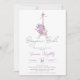Invitación Baby Shower a la Torre Eiffel. Tema de París, lavanda rosa rosa floral, completamente personalizado.