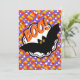 ¡Un murciélago aterrador gracioso dice Boo! Un fondo de maíz dulce en esta tarjeta de Halloween se agrega a la diversión. Personaliza el mensaje a uno de tus deseos.