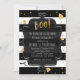 Invitación ¡BOO! Caramelos de Halloween a rayas negras y blan