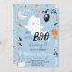 Invitación Boo convirtiendo dos fantasmas azules en cumpleaño