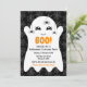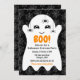 Adorable Halloween ghost and spider on a black background with white cobwebs.