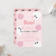 Esta tierna y jovial tarjeta de invitación para el cumpleaños de Halloween presenta un fondo rosa claro con chicas fantasmas con grandes cintas rosas y calabazas rosas. En el reverso se ven patrones de murciélago negro sobre fondo rosado. Perfecto para otoño / cumpleaños otoño para chicas! Personalízalo para tus necesidades. Puedes encontrar productos coincidentes en mi tienda.