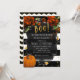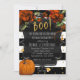 Invitación ¡BOO! Rosas rayadas blancas y negras y calabazas d