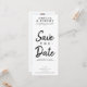 Estos divertidos marcadores en forma de foto tira de película de la cabina, salvo la fecha de las invitaciones de boda, son una buena manera de pedir a tu familia y amigos que guarden la fecha para tu gran día! Envíe un marcador único para guardar la invitación con sus fotos divertidas y románticas. La parte delantera incluye hermosas letras en blanco y negro para guardar la fecha, la fecha de su boda, la ubicación del boda y los sitios web bodas.