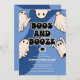 Cuando se trata de fiestas adultas de Halloween, la diversión gobierna la noche. Empieza el fiesta directamente con estas extravagantes invitaciones para fiestas de halloween para adultos con un fondo azul grueso, un grupo de fantasmas retro, el divertido dicho "abucheos y alcohol", y una plantilla de texto moderna que es fácil de personalizar, ¡tus invitados se morirán por recibir estas invitaciones!