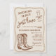 Sencillo estilo rústico occidental dibujado a mano, "nada de fantasía solo ama" el diseño de la ducha de novia con marco de cuerda, botas de vaquera y una flauta de champán.