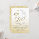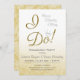 ¡Es hora de hacer estallar la burbuja con esta invitada de la fiesta de compromiso! Las palabras "I Do!" son frontales y centrales y están llenas de una textura purpurina dorada. Un diamante sobresale por encima del "o" para sugerir el anillo de compromiso. Hacia el fondo, una textura de fondo de círculos dorados brillantes sugiere ya sea luces o burbujas de champán. Elige entre rosa, azul u oro. Empieza tu compromiso con una invitación de fiesta que grita la ocasión desde la azotea!