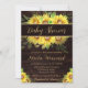 Esta invitación para baby shower rústica presenta girasoles vibrantes y exuberante vegetación sobre un fondo cálido con textura de madera, creando un encantador estilo campestre chic. La elegante escritura a mano combinada con tipografía serif limpia añade un toque pulido y acogedor, mientras que las brillantes flores amarillas aportan una cálida alegría a la celebración. Perfecta para lugares de eventos en graneros, reuniones al aire libre, baby showers de verano o cualquier tema floral rústico, este diseño es totalmente personalizable con los detalles de su evento. También combina perfectamente con papelería de girasoles a juego para crear un conjunto de baby shower soleado y coherente.