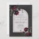 Invitación Bordeaux Rosas Rojas Sombra Gris Floral Compromiso