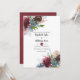 Flores de peonía y eucalipto bebé dejan la invitación a la boda con acentos de burdeos, ciruela, rosa rubor, añil, marina y azul polvoriento.