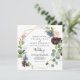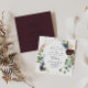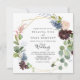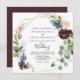 Esta invitación a bodas doradas y geométricas de borgoña es perfecta para una boda de invierno. El elegante diseño de boho cuenta con una marina acuarela, flores color rosa rubor y flores enológicas con detalles artísticos pintados con lápices. Guarde el papel incluyendo más detalles en la parte posterior de la invitación en lugar de en una tarjeta separada.