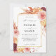 Envíe a sus invitados una hermosa invitación de bodas con su hermosa Invitación a la Boda Floral Dorada y Rubor Rosa. Pampas Grass, Naranja, Rubor Pink, Golden Yellow y Wine Burgundy Florals se reúnen para crear esta invitación a la boda pintada a mano. Los colores representan una versión de la temática del amanecer de barro. Si su boda tiene la temática Boho, en verano, otoño o rústico, esta puede ser la invitación para usted. Está cerca del personalizado con los florales pintados a mano y la impresión a nivel profesional. Pero sin el alto precio. Utilice nuestras plantillas para agregar su información de forma fácil y rápida. Visita esta página para comenzar.