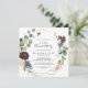 Esta invitación de aniversario de bodas de 50 años de color burgundy dorado geométrico es perfecta para un evento moderno. El elegante diseño boho presenta flores de color azul marino acuarela, rosa sonrosado y tono vino con detalles a lápiz artísticos.