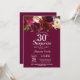 Burgundy Floral Sorpresa 30 cumpleaños fiesta invitación para mujeres. Invitación a la fiesta de cumpleaños roja de Borgoña. Flor floral color burdeos. 13a 15a 16a 18a 20a 30a 40a 50a 60a 70a 80a 90a 100a.
