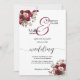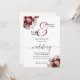Una elegante invitación nupcial con polvorientas flores borgoñas y elegante caligrafía que usted puede personalizar con sus detalles.