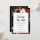 Las cosas cambian. Envíe este bello burgundy marsala floral cambiar la tarjeta de fecha para cambiar la fecha y, si es necesario, la dirección y hora de su boda o evento. Esta carta viene en color burdeos, burdeos oscuro, negro, blanco y rosa. Vea nuestras colecciones "Change the Date" o "Burgundy Marsala & Rubor Floral" para ver los otros colores.