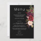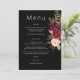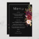Celebra tu boda o fiesta en la recepción con estilo y belleza con este menú floral de marsala rosa y borgoña. Personalizar con sus opciones de entrada y monograma. Disponible con un fondo blanco, negro, burdeos, rosa y burdeos oscuro.