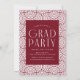 2025 invitaciones a fiestas de graduación con las tres fotos del graduado ubicadas a la derecha del diseño en un diseño vertical. El 2025 se exhibe con letras blancas y modernas, con un fondo burdeos. Personalice la invitación de la moderna fiesta de graduación con fotos agregando el nombre del graduado y el nombre de la escuela. El diseño se revierte para mostrar los detalles de tu fiesta de graduación con un fondo geométrico borgoñón y blanco. ¡Perfecto tanto para graduados de secundaria como universitarios!