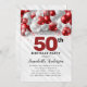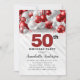 Invitación Borgoña Purpurina de globo de plata roja 50 cumple
