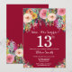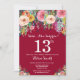 Invitación Borgoña Red Floral Sorpresa 13 cumpleaños