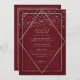Esta elegante y moderna invitación a la fiesta de cumpleaños de la quinceañera es ideal para un evento formal y elegante. Presenta un falso purpurina de plata brillante impreso rociado sobre un delgado diamante geométrico y borde rectangular con un borde grueso rojo borgoña debajo y un relleno rojo burdeos claro. Es moda, lujoso, bonito, sencillo y de moda; el diseño perfecto para su día especial. ***NOTA DE DISEÑO IMPORTANTE: Para cualquier solicitud de diseño personalizado, como solicitudes de productos coincidentes, cambios de color, cambios de posición o cualquier otra solicitud de cambio, haga clic en el botón "MENSAJE" o envíe un correo electrónico al diseñador directamente a lafemme.art@gmail.com. Incluso puede enviarle un correo electrónico solicitando un diseño completamente personalizado y nuevo.
