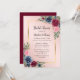 Elegante invitación a la ducha con flores de color azul marino, burdeos y rosa oscuro con flores de color azul marino, flores borgoñas y rubias y vegetación que enmarca los detalles del evento. Personaliza fácilmente en línea.