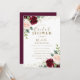 Invitación Borgoña Rubor Flores Purpurina ducha de novia