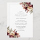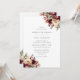 Elegante invitación a una boda con flores de borgoña y marfil, con un ramo de flores y vegetación de color burdeos y marfil. Diseño de tarjeta perfecto para invitar a sus invitados a su fiesta de bodas de marfil y borgoña.