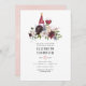 Flores de peonía y eucalipto bebé dejan una invitación a degustación de vino con toques de burdeos, ciruela, azul polvoriento y rosa rubor.