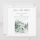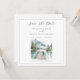 Esta idílica agua de lago de montaña en bosque de acuarela para guardar la fecha presenta un sereno muelle junto al lago enmarcado por pinos y montañas azules distantes, creada para parejas que planean una boda en un destino inspirado en la naturaleza o en la montaña. Los tonos suaves de acuarela azul y verde crean una atmósfera tranquila y romántica, mientras que la tipografía clásica mantiene el diseño refinado y atemporal. Ideal para lugares de casas de lago, celebraciones en el bosque, retiros en la montaña o ceremonias al aire libre donde la belleza natural establece el tono. Coordina perfectamente con el conjunto de invitaciones de boda a juego. Disponible en impresión, como descarga digital o ambos.