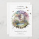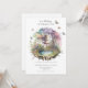 Una selva acuática encantada deseando un buen cuento de hadas de hadas, fiesta de primer cumpleaños invitación a acuarela en tonos rosa, azul y violeta, con mariposas y vegetación salvaje.