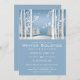 Diseño impresionante en azul y blanco con árboles, ardillas y copos de nieve.