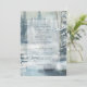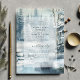 Invitación a la boda de un guion de escritura moderna de tipografía moderna con polvorientos suelos de madera azul y blanco.