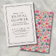 Invitación Botánica Negrita Bloom Bridal Shower. Esta invitación bohemia inspirada en la ducha de novias capta los tonos cálidos y mullidos de una puesta de sol mientras mantiene una estética elegante y caprichosa. Tanto la parte delantera como la trasera tienen un fondo crema o beige claro, creando una base suave y refinada que realza el diseño sutil y colorido. La parte delantera muestra un texto negro refinado enmarcado por un simple borde de doble línea para un aspecto pulido. Diseñado con una combinación de caligrafía manuscrita y una fuente serif clásica, el texto añade un encanto intemporal a la invitación. La parte de atrás rebosa de audaces flores de acuarela en una mezcla muda de rosados, corales, amarillos y naranjas, con sutiles toques de azul morado, verde y verde azulado. Este cálido patrón floral inspirado en la puesta del sol contrasta maravillosamente con el fondo suave, combinando el capricho con la elegancia artística. Perfecto para celebraciones en el jardín, reuniones rústicas o eventos de moda de boho, esta invitación desprende un encanto refinado y colorido. Personalizable completo, usted puede ajustar los colores, fuentes y disposición para que se correspondan con su visión única de la ducha nupcial. Disponible como una invitación impresa o un archivo digital descargable, este diseño combina belleza natural con un toque moderno, marcando el tono para una celebración inolvidable en honor a la novia.