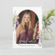This arch photo graduation party invitation is accented with peach and purple flowers and lush greenery. The elegant layout includes space for two photos and is adorned with delicate handwritten script. Personalize the back with your party details to complete the design.