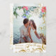 © 2022 Socialite Designs & LICENSORS. Una elegante foto de oro y acuarela de 2 colores permite guardar la fecha con hermosos remolinos botánicos decorativos de purpurina y flores acuarelas. Hermosa caligrafía de escritura y flores acuarelas en azul, blanco, rosa, rojo y verde. La apariencia de oro falso roce a los confetti por la espalda.