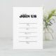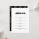 Invite a sus invitados con esta elegante invitación en blanco y negro. Fácil de usar plantilla para escribir a mano sus invitaciones. Utilice para cualquier ocasión o evento como bodas, aniversarios, cumpleaños y reuniones familiares. Invitación para todo propósito que hará que la planificación de su celebración sea fácil. Personalice aún más este diseño seleccionando el enlace "personalizar más" si lo desea, pero ¿por qué no mantenerlo simple?