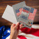 Botas militares y bandera de EE. UU. Invitación de despedida para una fiesta de bienvenida con el dicho "Cuando el deber llama, los valientes responden" es una excelente manera de despedir a un valiente aviador (Fuerza Aérea), guardián (Fuerza Espacial), soldado (Ejército), marine (Infantería de Marina), marinero (Armada) o guardacostas (Guardia Costera) que se dirige al entrenamiento básico (BMT) / campo de entrenamiento. ¡Perfecto para fiestas de despedida, graduación o despliegue! Con un fondo gris con bandera de EE. UU. goteando, botas de combate de acuarela y acentos patrióticos vintage rojos, blancos y azules, es una plantilla de invitación para personalizar fácilmente cada línea para cualquier rama del servicio. Como madre de un miembro de la Fuerza Aérea (mi hijo es un veterano jefe de tripulación de F-16), yo también tuve dificultades para encontrar invitaciones y tarjetas adecuadas para BMT y graduación: todos mis diseños de BMT para el proceso de entrenamiento completo aquí en mi tienda Zazzle, fueron creados para mi hijo cuando dijo "