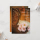 Continúe la celebración en honor a la recién casada y el recién casado la mañana después de su ceremonia de matrimonio con la invitación casual pero elegante para Brunch de Bodas Posterior con Margaritas Rosadas y Botas de Vaquero. Esta personalizada e informal invitación de Desayuno o Almuerzo Después de la Boda de estilo rústico rancho presenta una encantadora fotografía de botas de vaquero occidentales de cuero marrón, flores de margarita rosa y un velo de novia blanco con un fondo de madera de granero desgastado marrón. Disponible como invitación impresa para enviar por correo o como descarga digital para compartir fácilmente en línea.